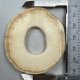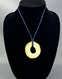 Narwhal Tusk Ivory Pendant perfect specimen (crack free) cross cut slice of a narwhal tusk was obtained in the mid 1900’s, this beautiful slice is nearly 2 1/2" diameter and tapered from .20" thick at the top to .275" thick at the bottom and is polished on all sides. Reveals the tusk interior, the thick outer layer of cementum and the unique to narwhal ivory white ring separating the interior primary dentine with growth rings. Comes with both a 24" white satin cord and a 24" deep blue satin cord necklace. Search as you may, this is the only one you will find. This slice is from a narwhal tusk that was imported before the 1972 Marine Mammal Protection Act and is exempt from its regulations.