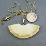 Beautiful one of a kind genuine Narwhal Ivory pendant with gold plated chain and bail, looks like angle wings. Made from piece of a cross cut of a tusk that was imported from Pond Inlet Nunivat Canada in the 1960’s by the J. L. Houston Company of Seattle. We hand made this pendant from the stock we acquired from them in 2013 before they closed their doors forever. When our stock is gone there will be no more, narwhal can no longer be imported into the U.S. (since 1972). From us the seller to the buyer we hereby state that "to the best of our knowledge and belief this narwhal ivory was imported prior to the 1972 Marine Mammal Protection Act." The invoice will state this.