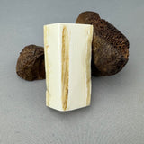Narwhal Tusk Section chunk, a piece we acquired from the Houston collection brought into Seattle in the 1950’s from the Inuit village of Pond Inlet, Nunavut Canada. This 2 1/2” tall x 7/8" - 1" at its widest x 1 3/4" around the round.. Tusk section is polished on all sides to highlight the beautiful grain pattern and light polished on all sides. Any fissures have been filled and sealed. For display or jewelry cross cuts. Shows the beautiful twisting pattern unique to narwhal ivory. The rarest of all ivories. We do not cut narwhal tusks, this is a rare opportunity- Ships Free , US Sales ONLY! This is a stunning piece.