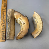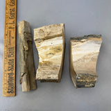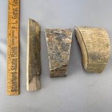 Mammoth Ivory chunky pieces for inlay, jewelry, scrimshaw  or carving.  1 1/4" - 5 1/2" lengths  x  3/4" - 1"  thickness, partial cross cuts and long wedge shaped piece. This lot has thick pieces with some separation, see photos.  Ships Free in U.S. only. This is the lot you will receive.