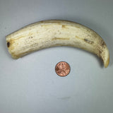Here is a handsome vintage sperm whale tooth, 6" long around the curve and 1 1/4 " wide at the base, small hollow so good for knife handle or carving. Must be ordered from a Washington state address so tax will be added. Please don't order this to be shipped outside of Washington state, we cannot ship this out of state and will cancel the order and refund you, an unnecessary effort for both of us. You can also call and order 800-423-1945