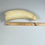 5" long sperm Whale tooth is 1 3/8" base diameter great for tabua, scrimshaw, carving, pendant or knife handle. This one has repaired and stabilized crack on the back side, looks great. Order only if you have a Washington State address otherwise we have to cancel and refund you. Sales tax will be added, price included shipping.