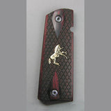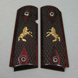 Gold Colts inlaid into both grip panels and facing forward, these are really cool. These grips will fit most compact frames such as Springfield, Smith and Wesson, Les Baer, Ruger, Wilson, Kimber compact or ultra and Others.